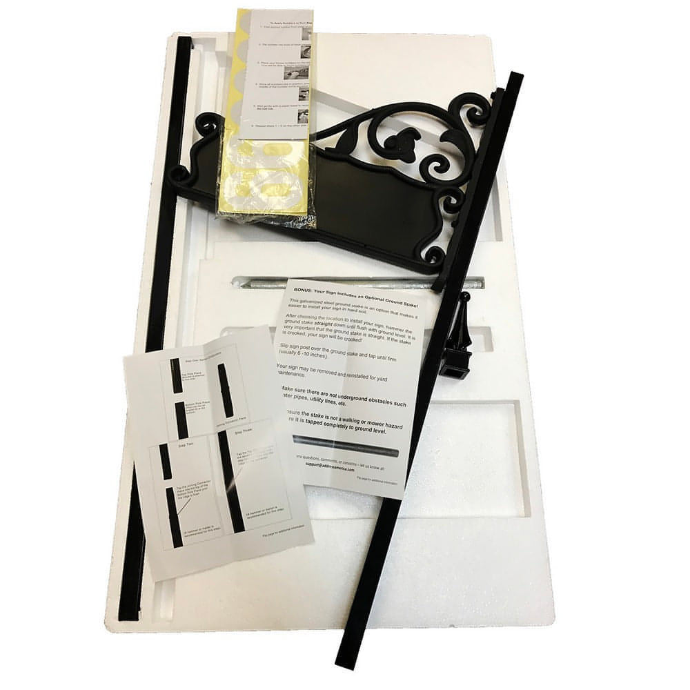 The assembly process is a breeze, taking a mere 10-15 minutes from start to finish. A hammer is the only tool needed to attach the extra post and extender to your sign. Once assembled and customized, your address sign will not only exude elegance but also bolster the safety and security of your loved ones.