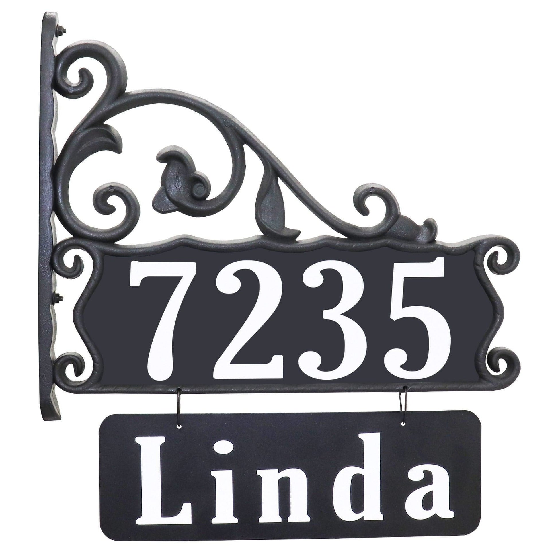 The Boardwalk Lamppost Sign with Name Rider is the perfect addition to any decorative lamp or other standing structure in your yard. When you order your personalized address sign from our sign makers, your address number will be custom cut and applied to our famous Boardwalk bracket and family or street name applied to name rider. Then by simply attaching our reflective address sign to your existing lamppost or other similar structure, you will have a yard address sign that not only adds a touch of elegance to your yard, but it will also improve the visibility of your address.