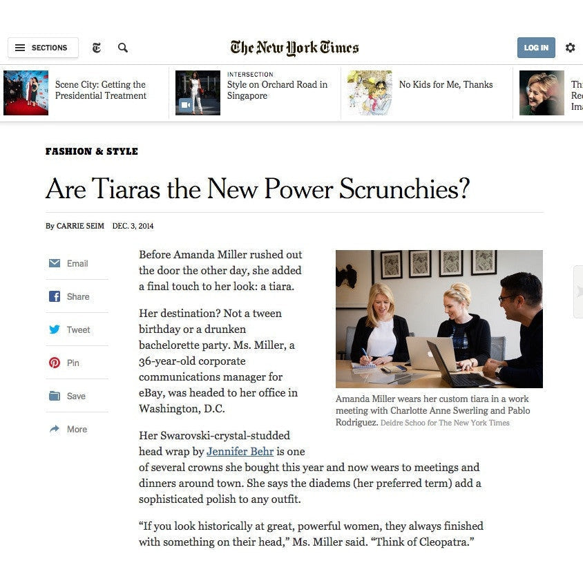 Are Tiaras the New Power Scrunchies? boldly asked the New York Times. Not that "power scrunchies" ever happened, ever, but we decided to give the business tiara a try. And now we're hooked.