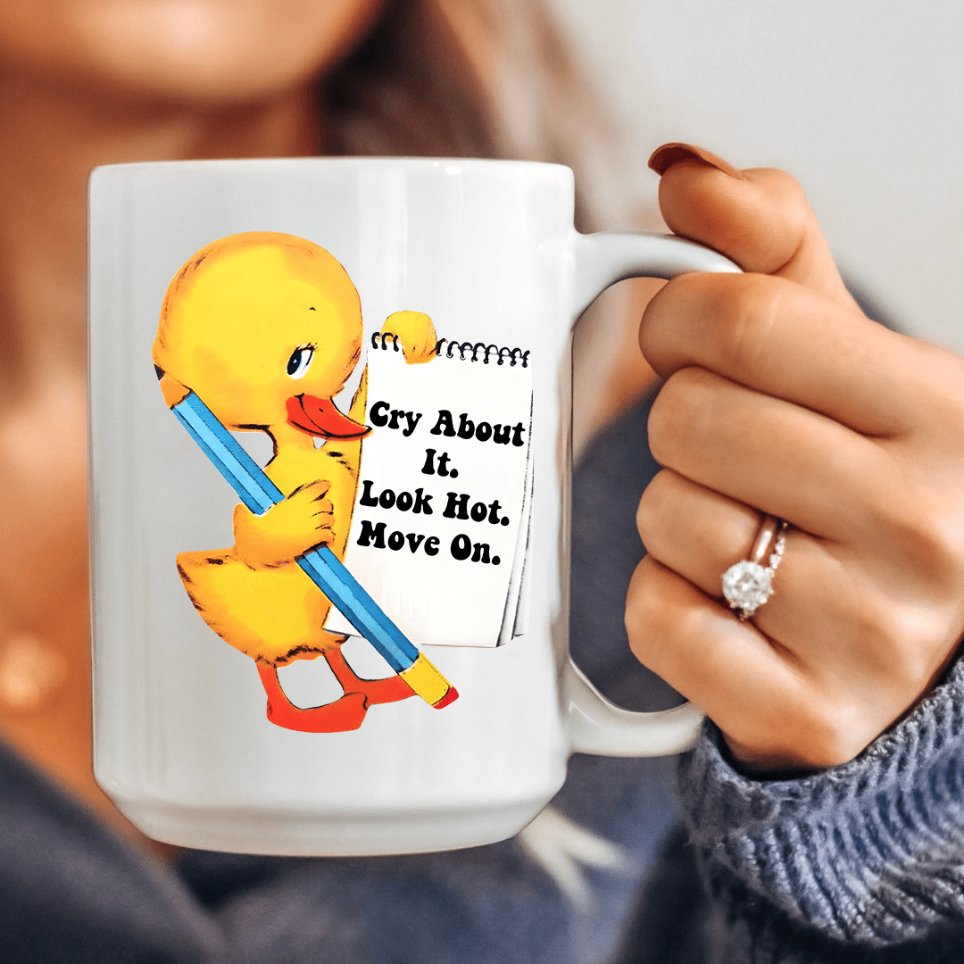 Introducing our empowering "Cry About It Look Hot Move On" 15 oz Mug. Life throws curveballs, but hey, we've got the perfect motto to handle it all. Crafted from sturdy ceramic and featuring a bold statement design, this mug is your daily dose of sass and resilience.