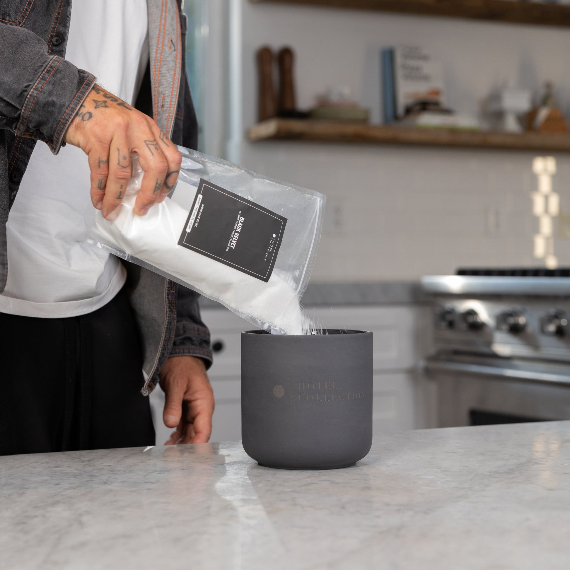 Indulge in the epitome of opulence with our Hotel Collection Sand Wax Candle, a true testament to refined elegance. Elevate your ambiance with the included ceramic bespoke vessel using our exclusive and refillable sand wax technology. Say goodbye to wasteful candle disposal and embrace a sustainable approach to luxury.