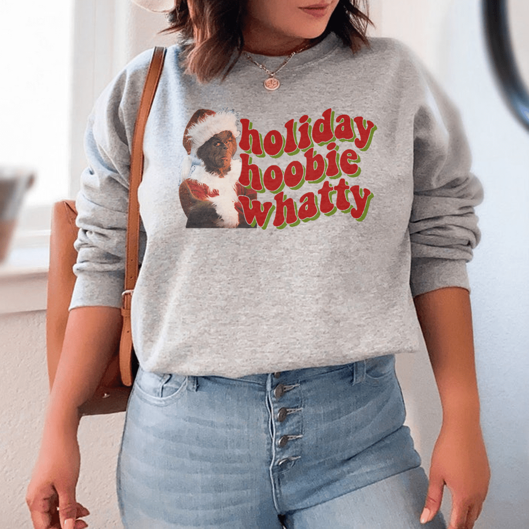 Dive into the festive season with a twist of whimsy in our "Holiday Hoobie Whatty" sweatshirt. This isn't just a garment; it's your passport to a world of holiday fun with a side of mystery!