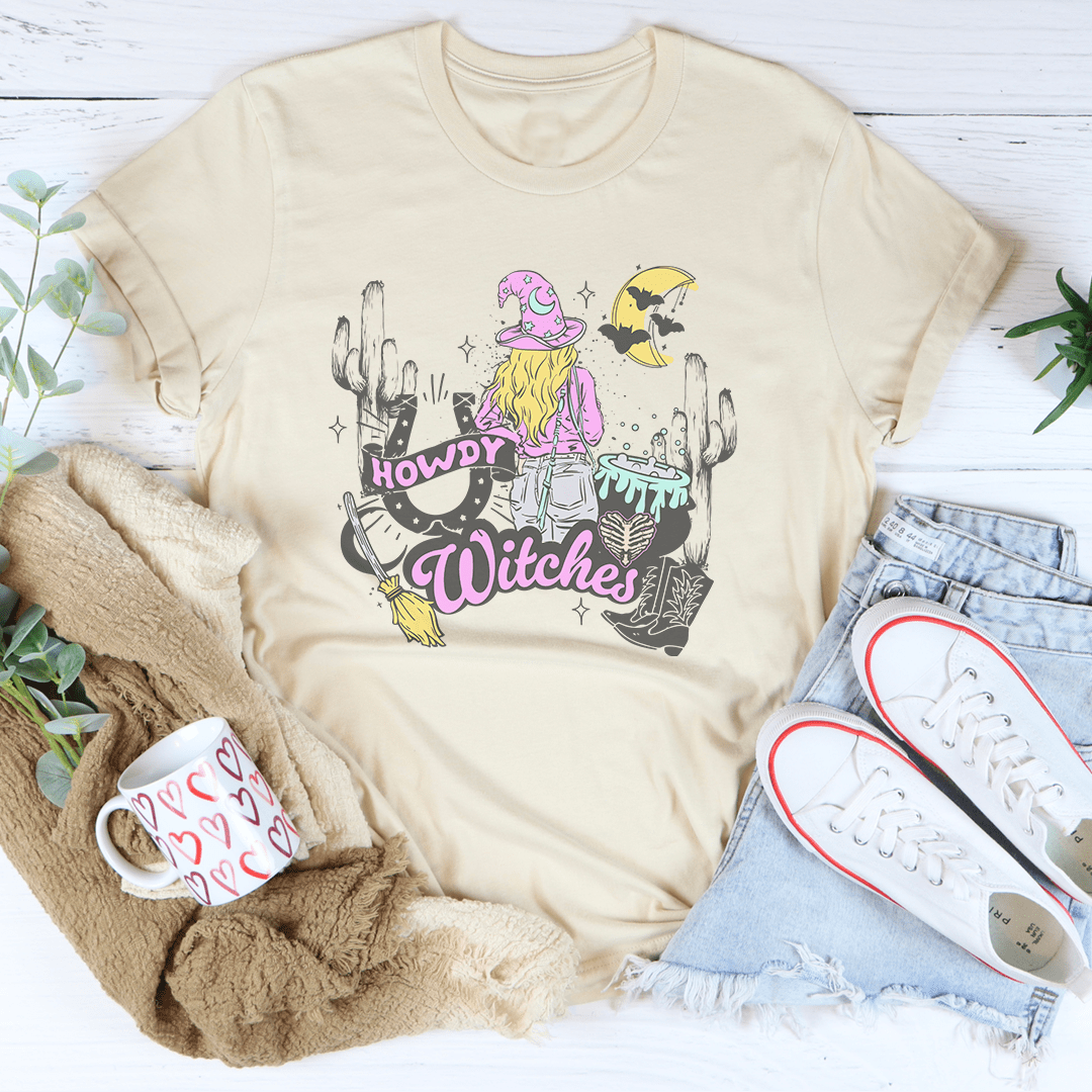 Embrace the Halloween spirit with a Southern twist in our "Howdy Witches" T-shirt. This playful tee blends witchy charm with a warm greeting, perfect for those who love to add a touch of whimsy and friendliness to their spooky celebrations. It's an ideal choice for Halloween parties, trick-or-treating, or any festive gatherings this fall.