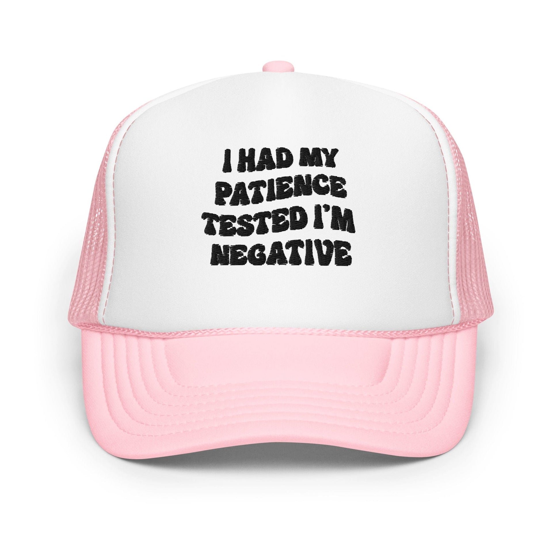 Printed with the sassy slogan "I Had Patience Tested I'm Negative" trucker hat is crafted from superior, breathable fabric, this cap provides ultimate comfort while shielding you from the sun's rays. Feel the soft texture against your hair as it sets a cool, laid-back ambiance for your day.