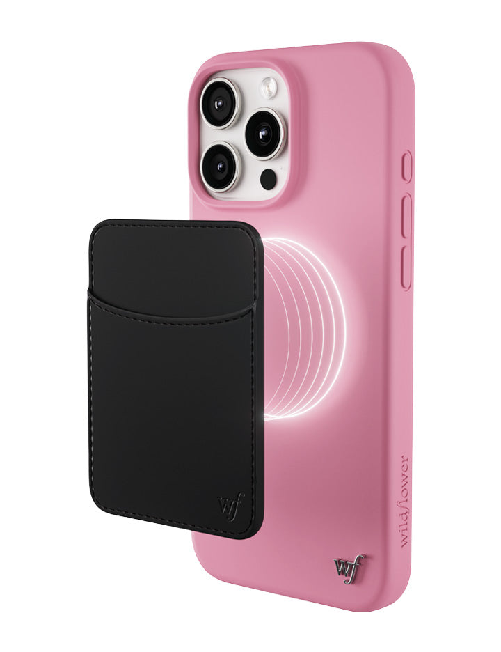 Carry your essentials with ease using our Black iPhone MagSafe Wallet. This limited edition wallet attaches effortlessly to the back of your phone with MagSafe technology, offering a convenient way to store your cards. Available in two styles - solid Black and Leopard print. These designs keep things stylish while perfectly pairing with our MagSafe iPhone cases.