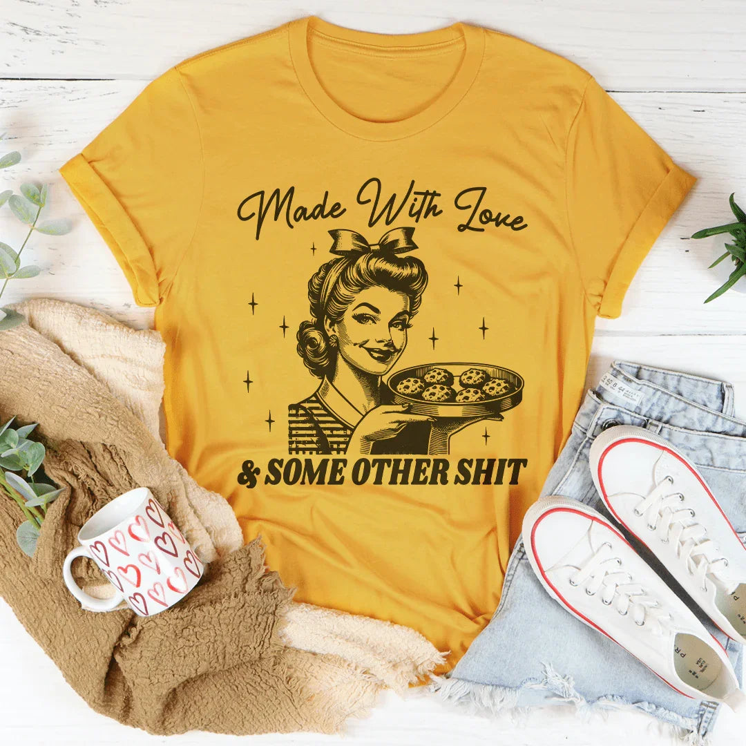 Add a dash of humor to your wardrobe with the "Made With Love And Some Other S*" T-shirt. This cheeky top is perfect for those who appreciate a good laugh and a little bit of mystery in their ingredients. Crafted from a soft, comfortable fabric, it's designed to feel as great as it looks, ensuring you stay cozy and stylish throughout your day.