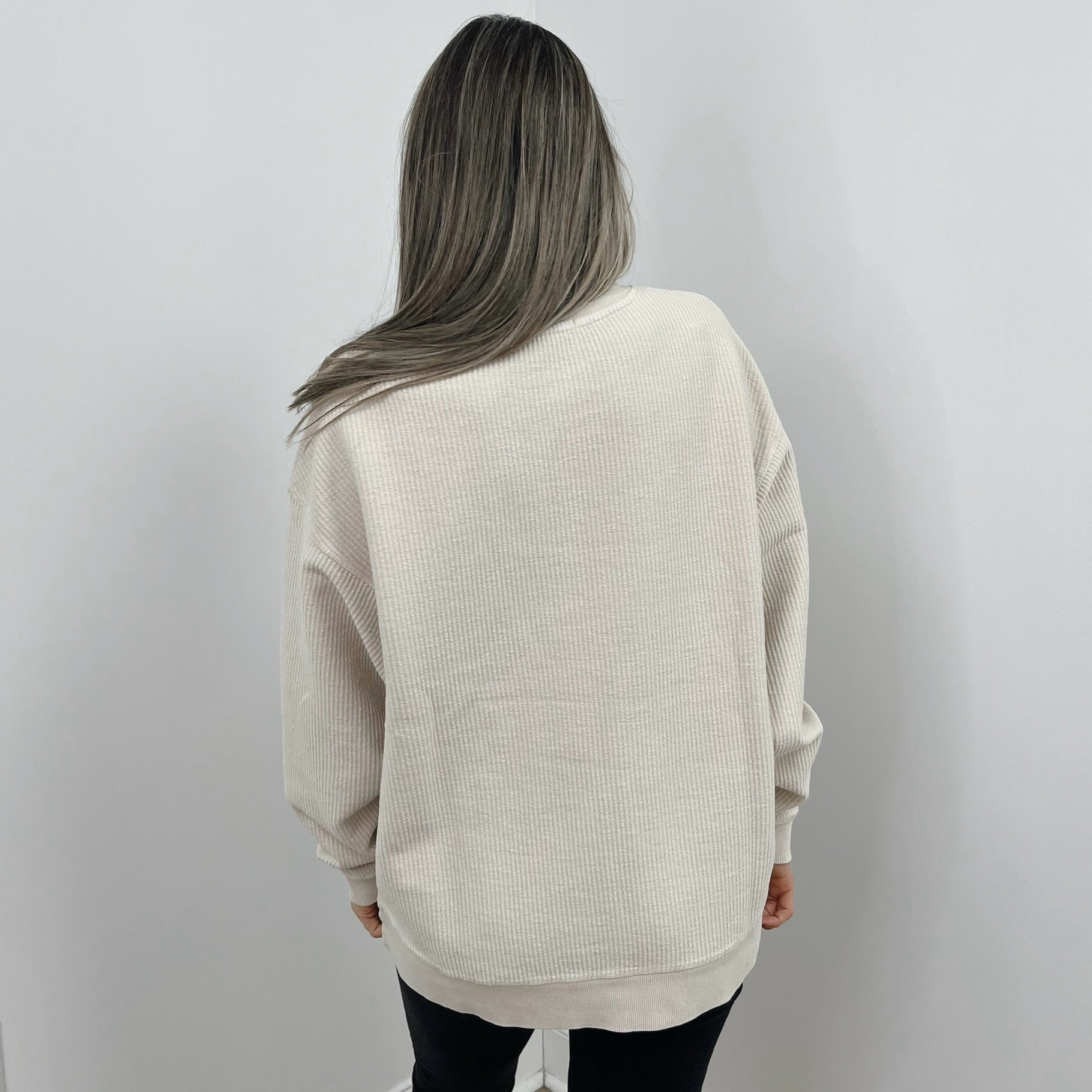 Our Oversized Corded Crews are exclusive to Ivy + Cloth! We know you will love wearing these with leggings for a cozy night in. These are very oversized so we recommend going down a size if you are in between sizes!