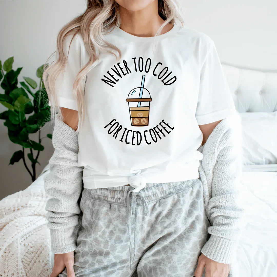 Meet your new go-to: the Never Too Cold For Iced Coffee Tee. More than just a funny shirt, it’s a playful badge of honor for women who live by their own rules—and aren’t afraid to show it. Wearing this tee is like wrapping yourself in your favorite inside joke, letting you express your caffeine-fueled attitude with serious comfort and a cool dash of wit.