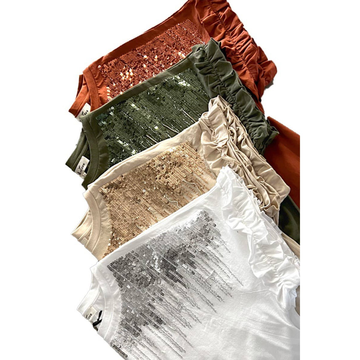 Ombre Sequin & Rhinestone Cotton Knit Top With Ruffle [Available in Sizes SM-L]