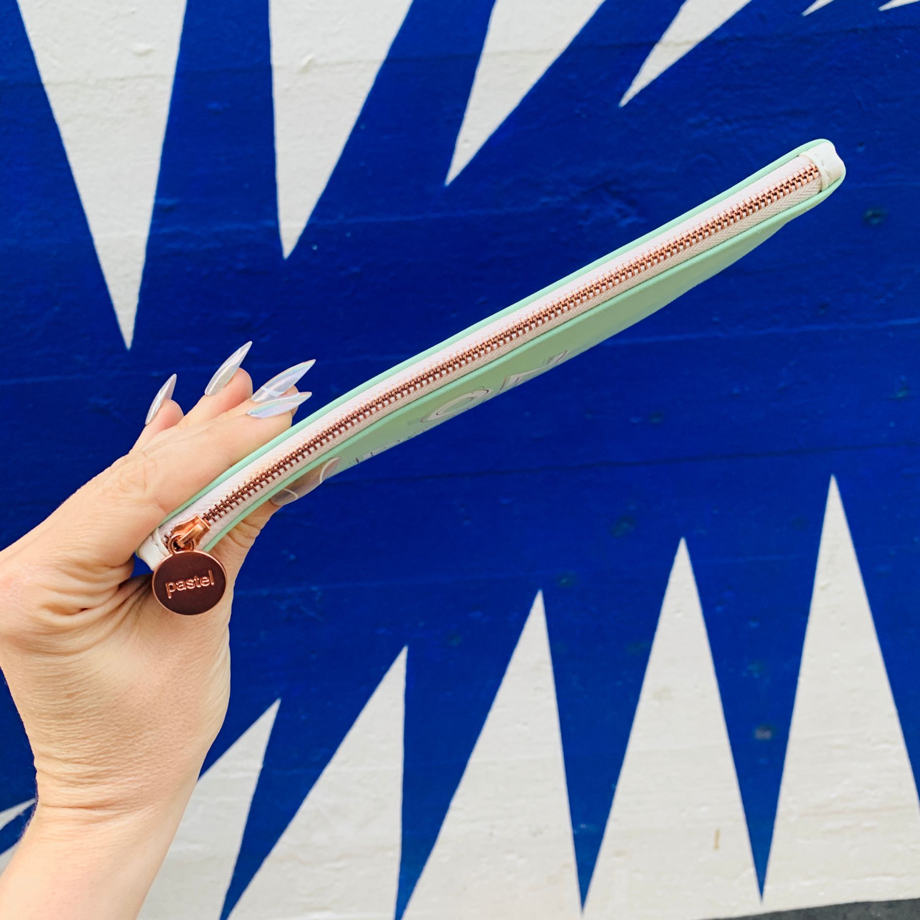 Chic, green, rounded clutch that keeps you on point and organized.