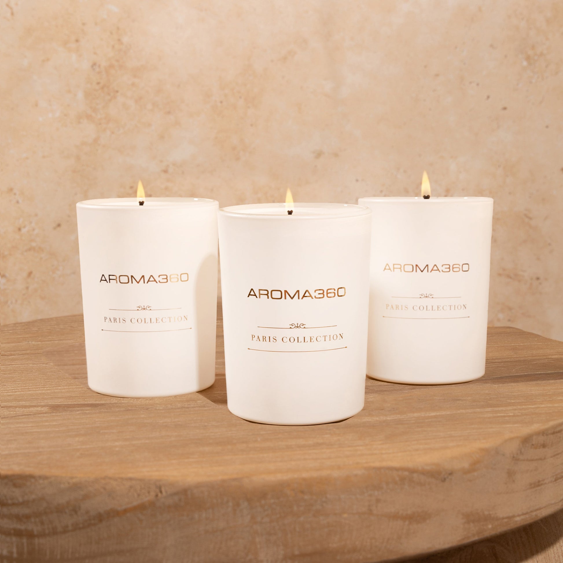 Discover your favorite while indulging in a choice of luxury hotel-inspired scents. Each set includes one of the fragrances below in an 11oz candle.