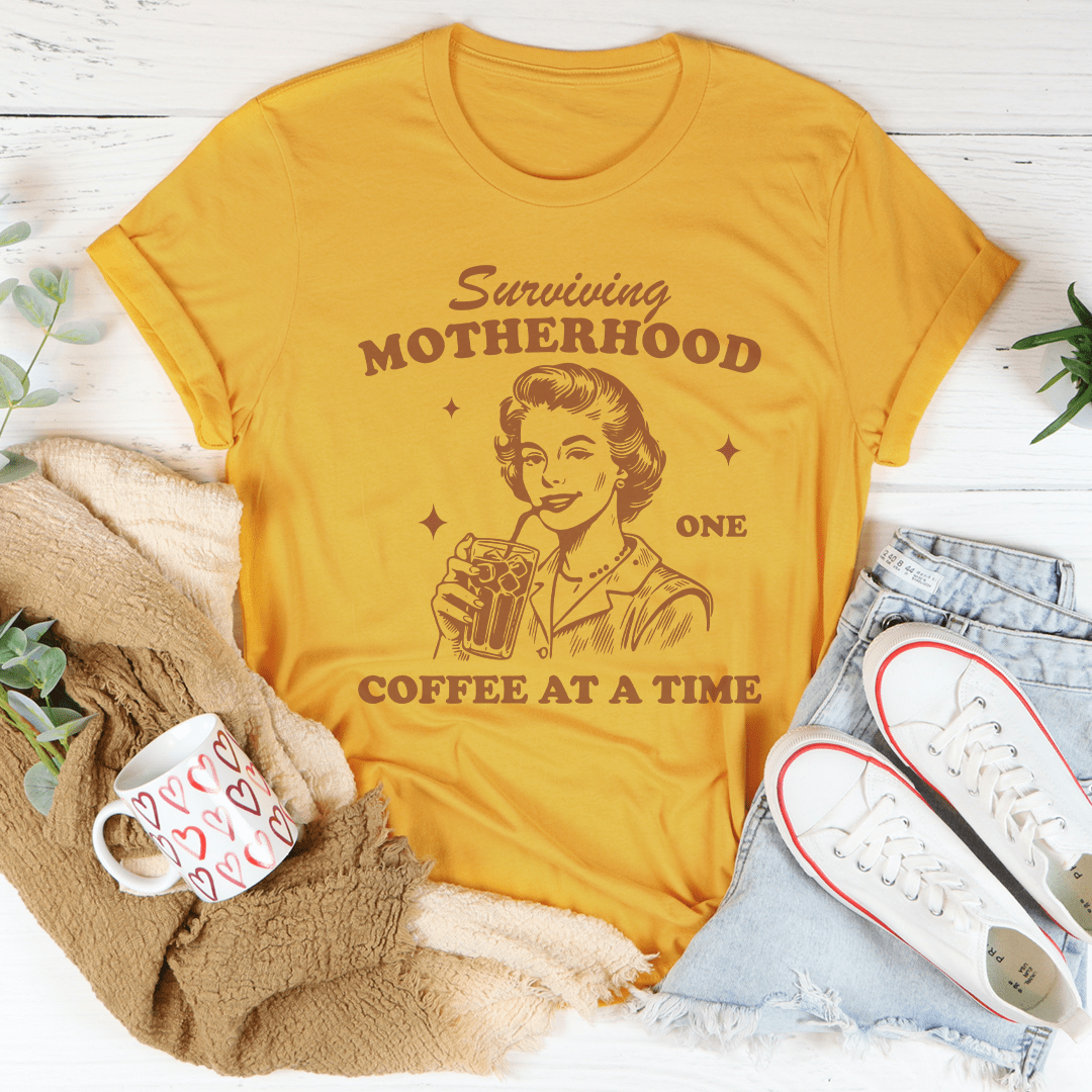 Pull on this "Surviving Motherhood" tee as a badge of honor and a conversation starter among fellow parents. It's a perfect way to show solidarity in the universal journey of motherhood, reminding you that you're not alone in this wild adventure.