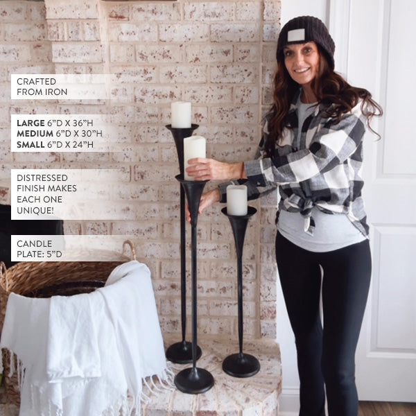 Your home decor is about to get a whole lot more dramatic! If you've ever looked at a beautifully styled space and wondered how they created so much romance, height, and wow factor, we've got the secret! And it's here for only a limited time! Our Tall Flared Black Iron Candle Holders are BACK and at a Special Steal Price!