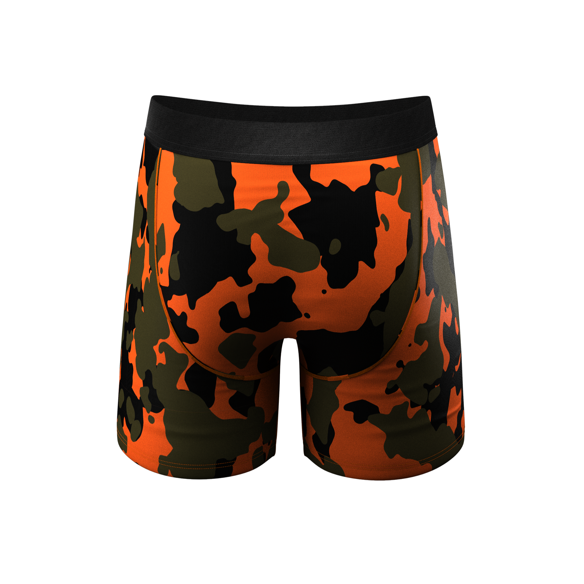 Keep the Bojangles bouncing even during your sweatiest forest sessions with these orange camo deer boxers.