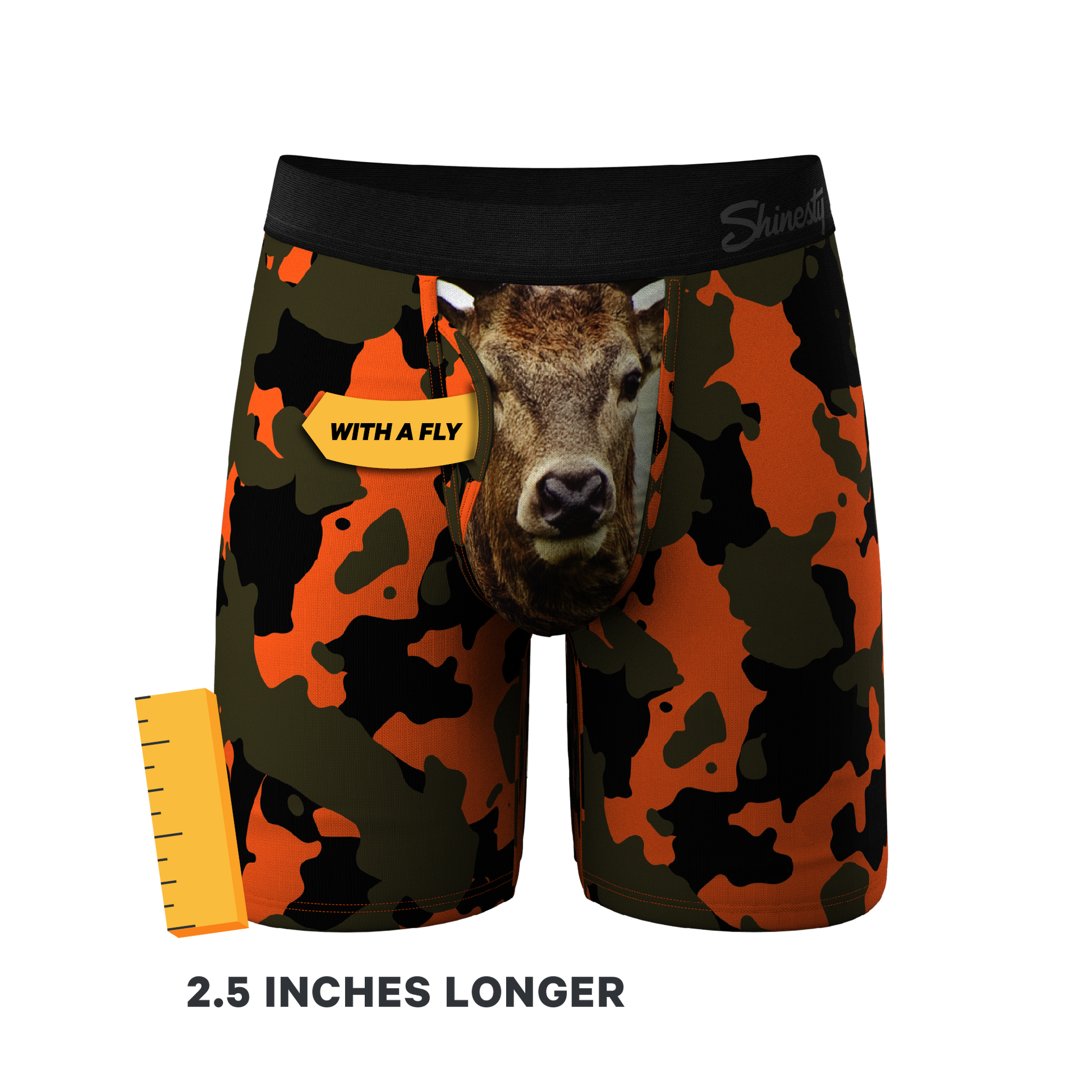 Keep the Bojangles bouncing even during your sweatiest forest sessions with these orange camo deer boxers.