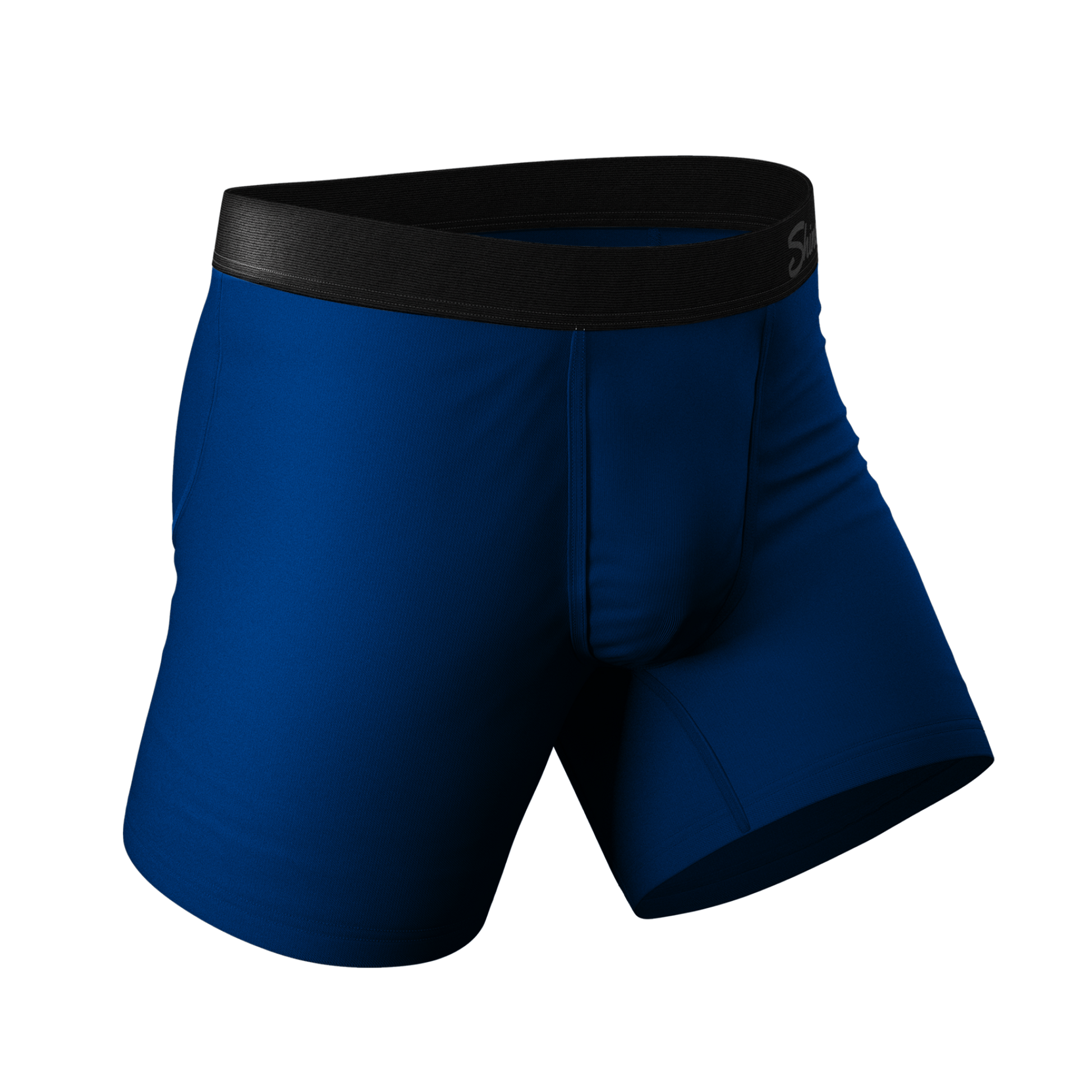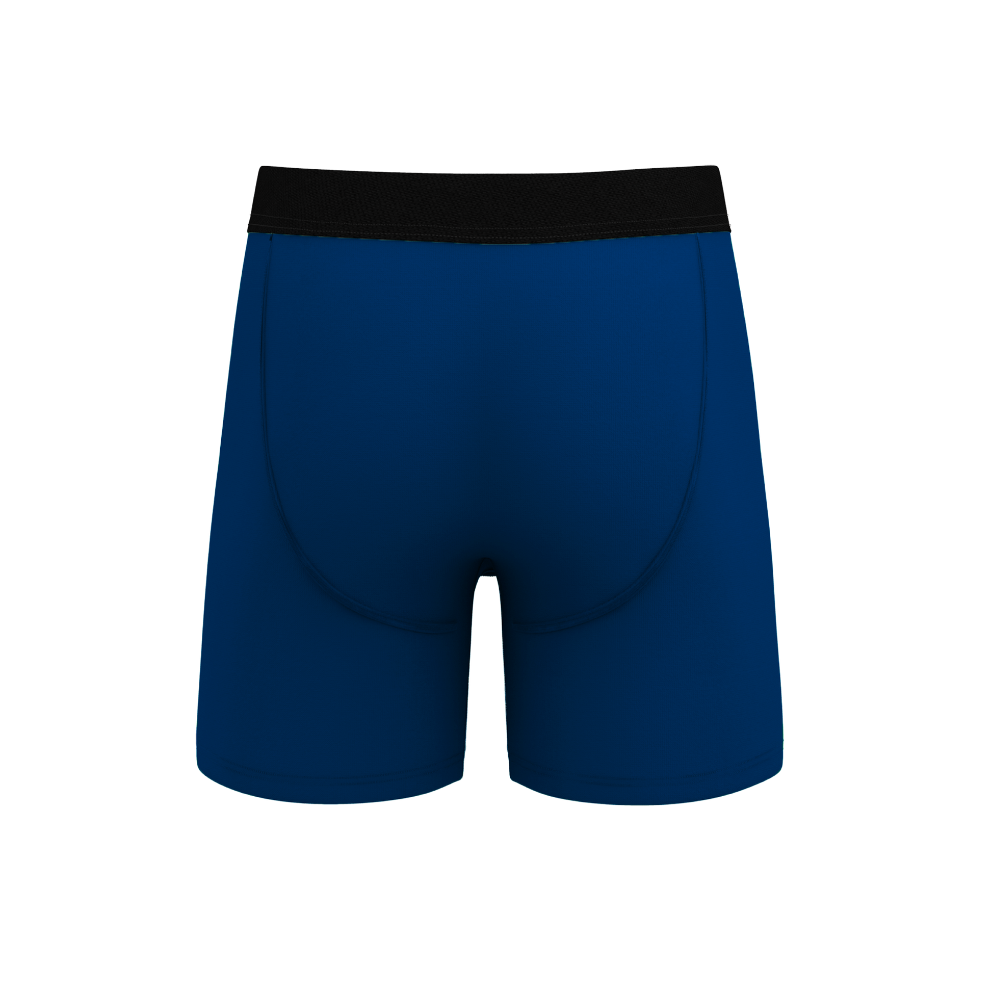 You might already have a pair of Ball Hammock® boxers that have something aggressive on the dong region, like an American Eagle, or maybe even a hot dog. I think it might be time for you to give a nod to the classics with these dark blue solid Ball Hammock® boxers. If you go home, and your mom does your laundry, she won't ask questions about these plain blue men's boxers. But if you show up with a wild animal on your peen, you've got some explaining to do.