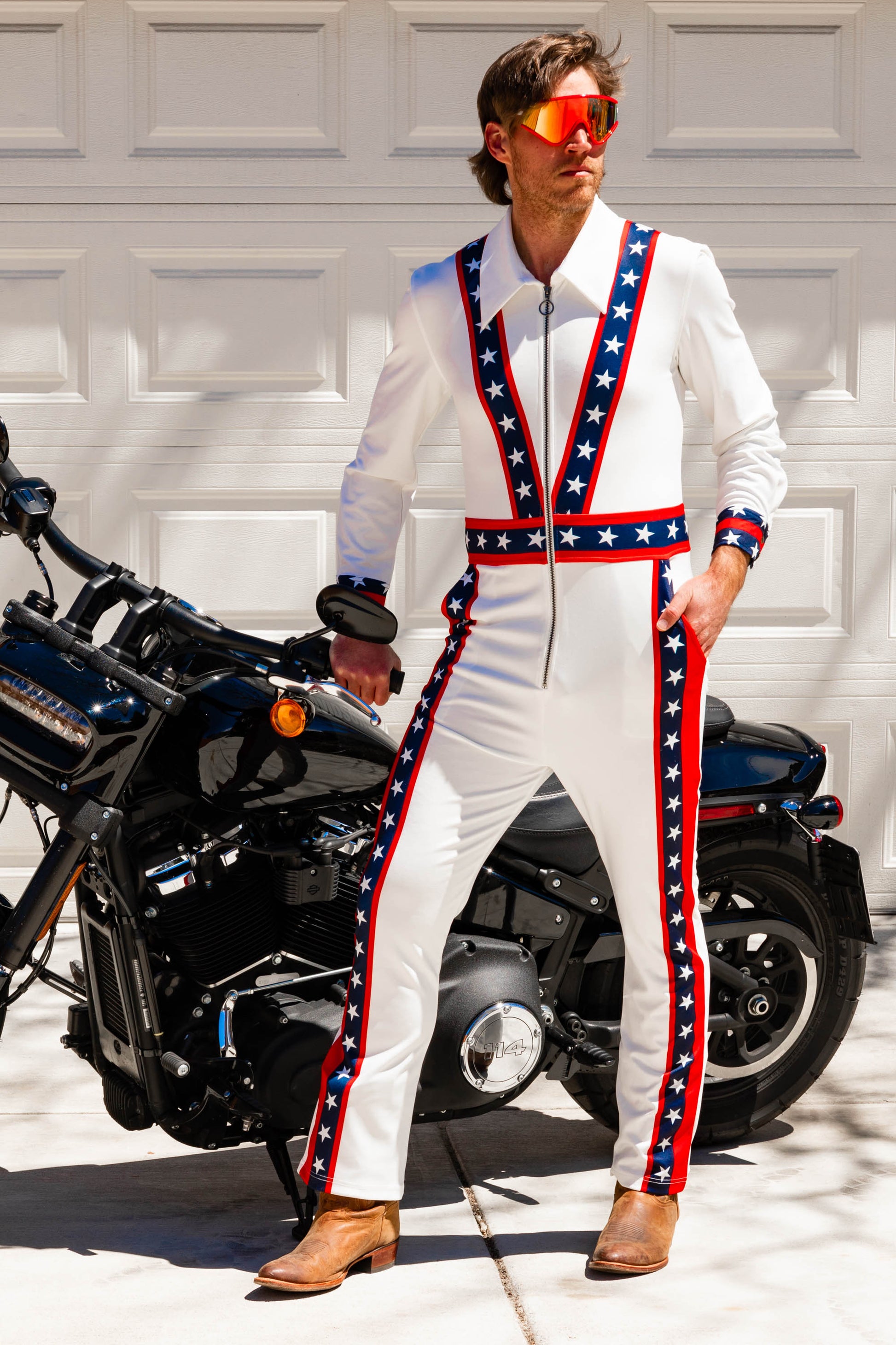 Do you find yourself coming up just short in your grandiose attempts to impress the opposite sex or jumping over 13 school buses on your motorcycle? If you answered yes to either of those questions then you’re an American icon who needs a signature look and we’re here to help. We designed The Big Jumper Stuntman Flight Suit exclusively for the confident risk taker who never goes back for a second wipe.