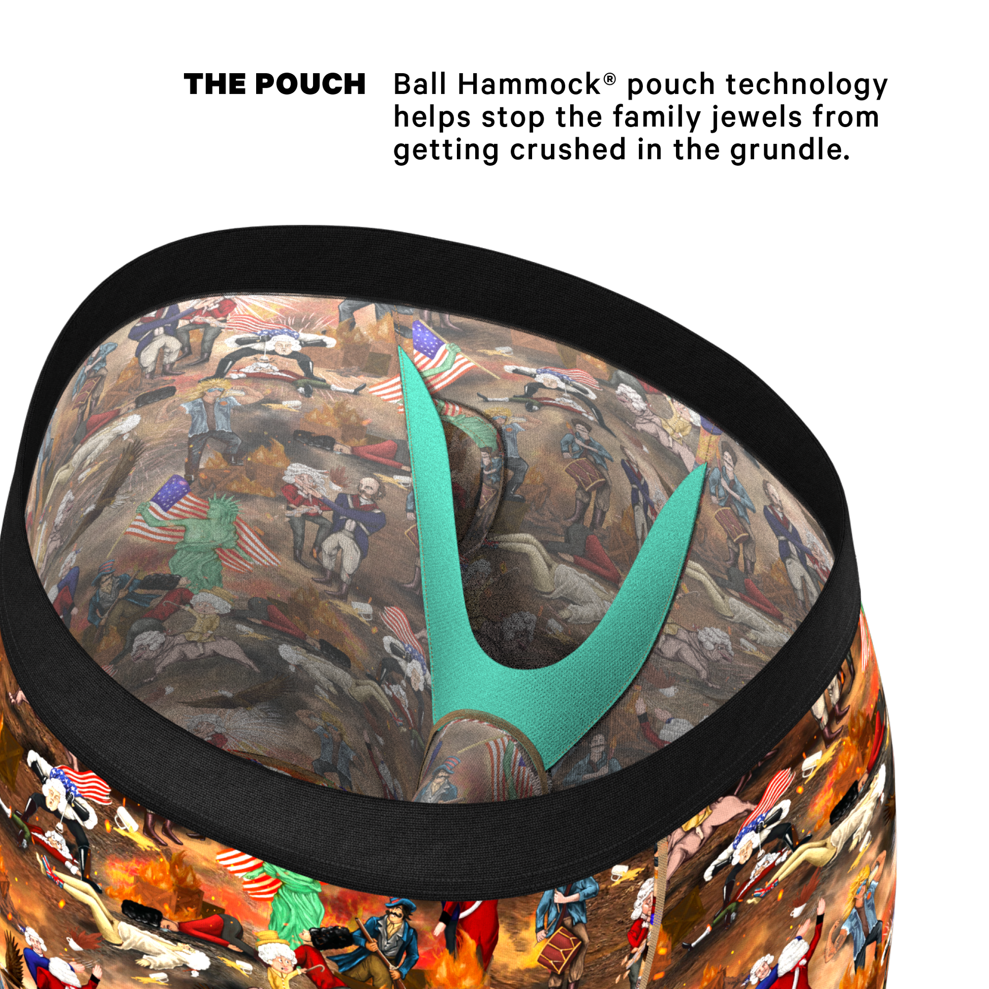 Celebrate the heroes who started a revolution because their matcha was too expensive with this Long Leg Ball Hammock® pouch underwear. Their brave act of defiance birthed the greatest nation in the world, even though coffee is way better.