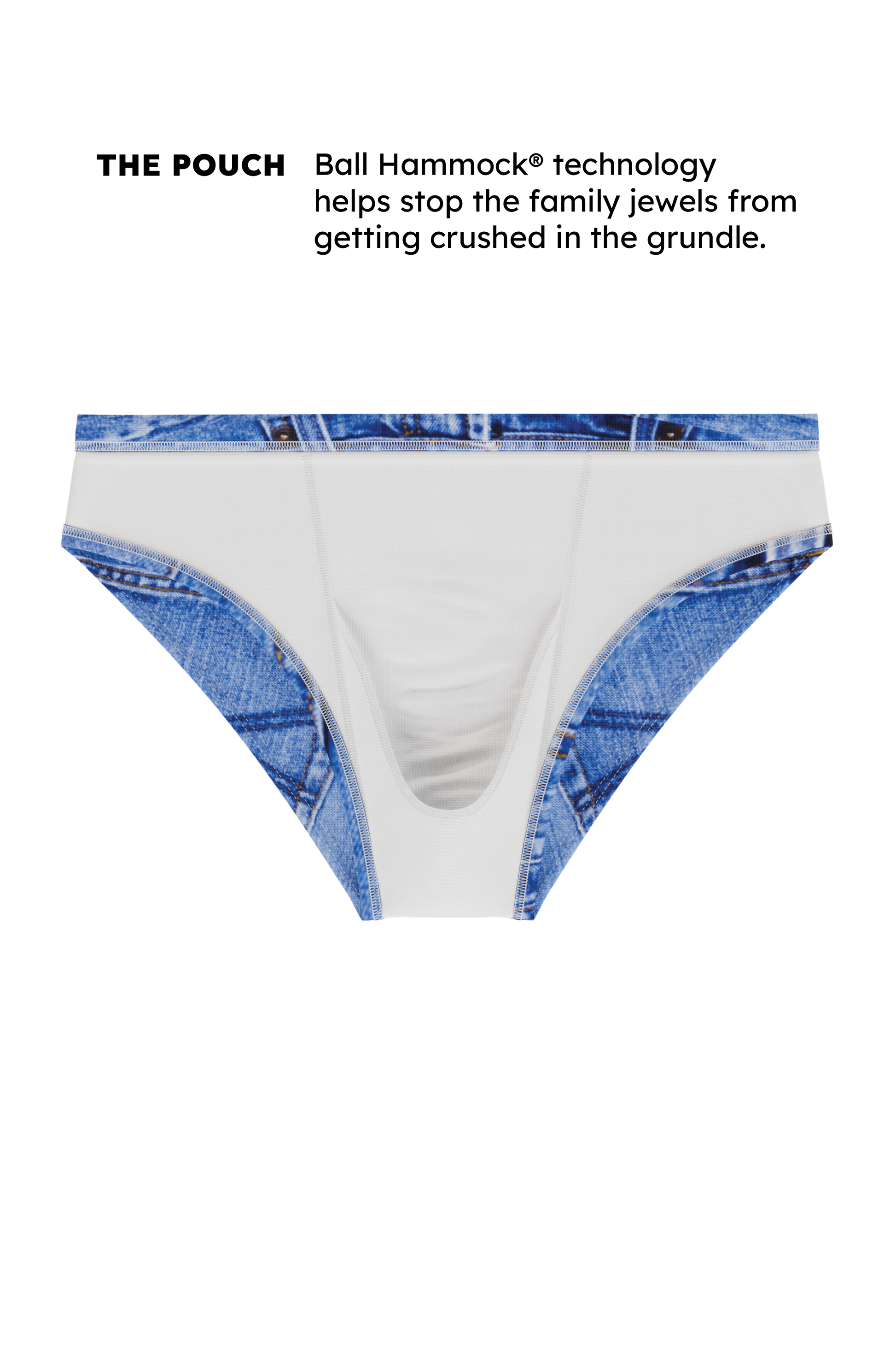 Our best selling denim swim brief...now with a supportive pouch inside. Don't forget to lather extra sunscreen on those tender thighs.