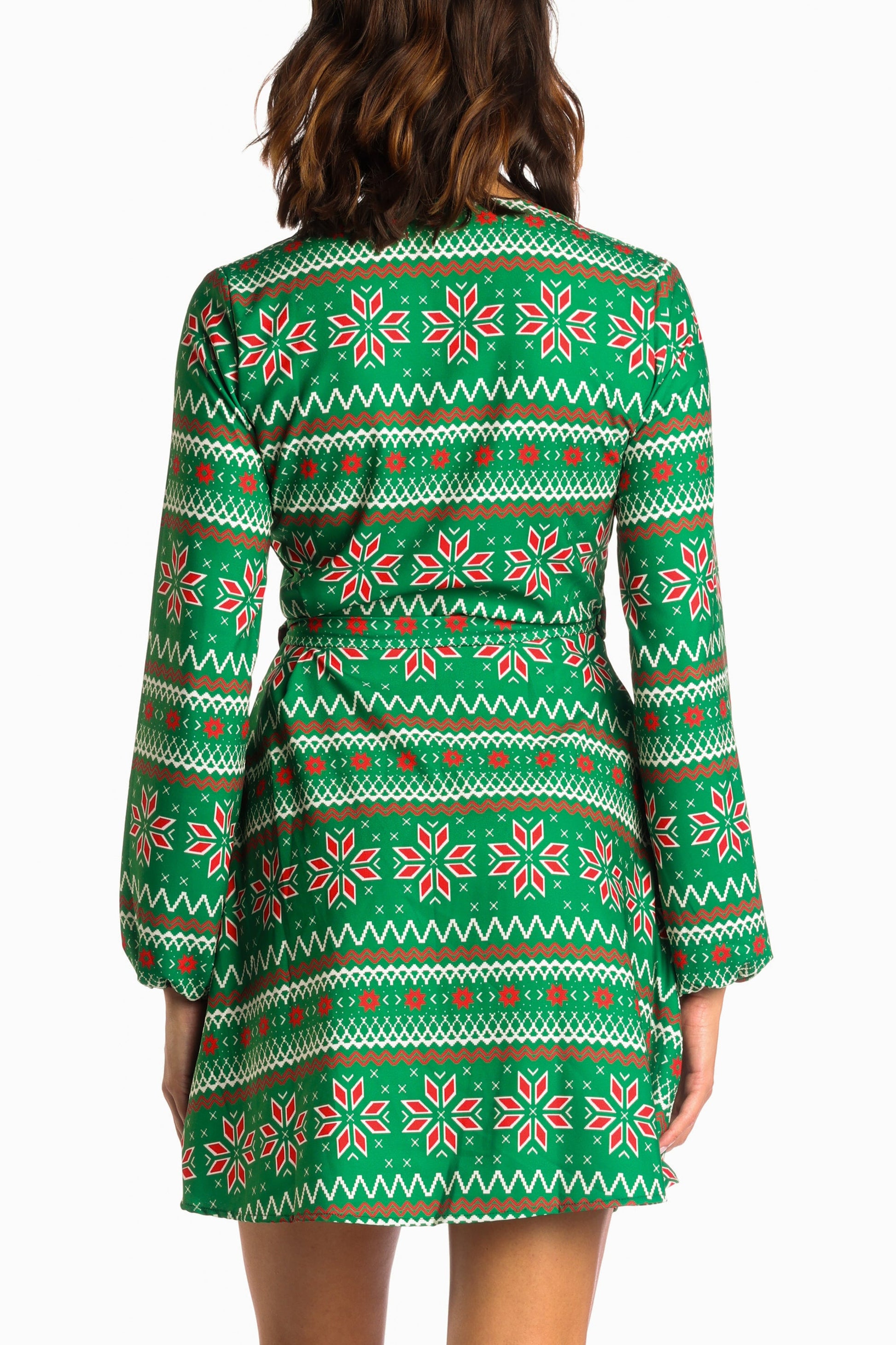 The Kris Kringle | Green Fair Isle Christmas Wrap Dress
