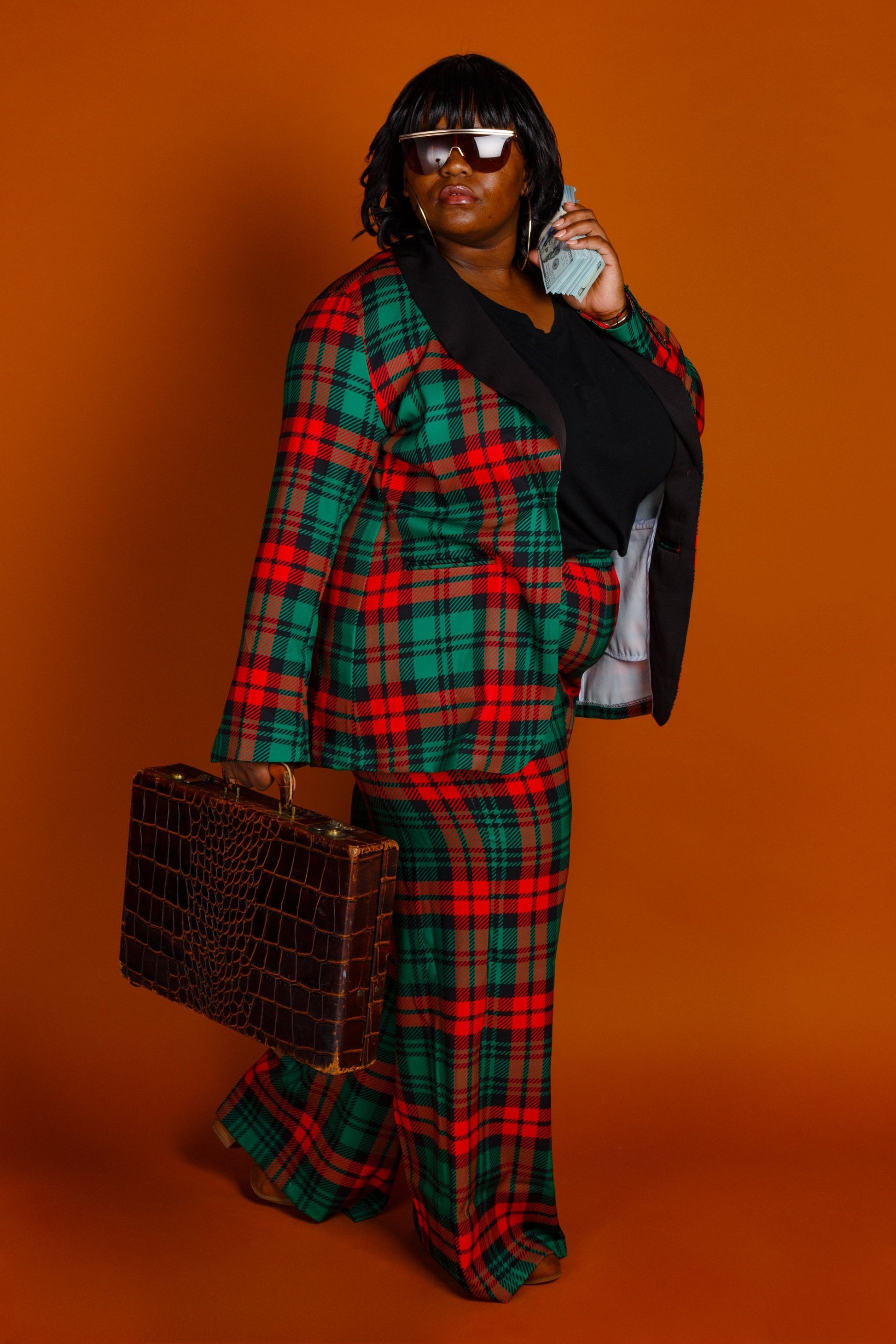 The Lincoln Log Love Lady | Women's Green Plaid Christmas Suit