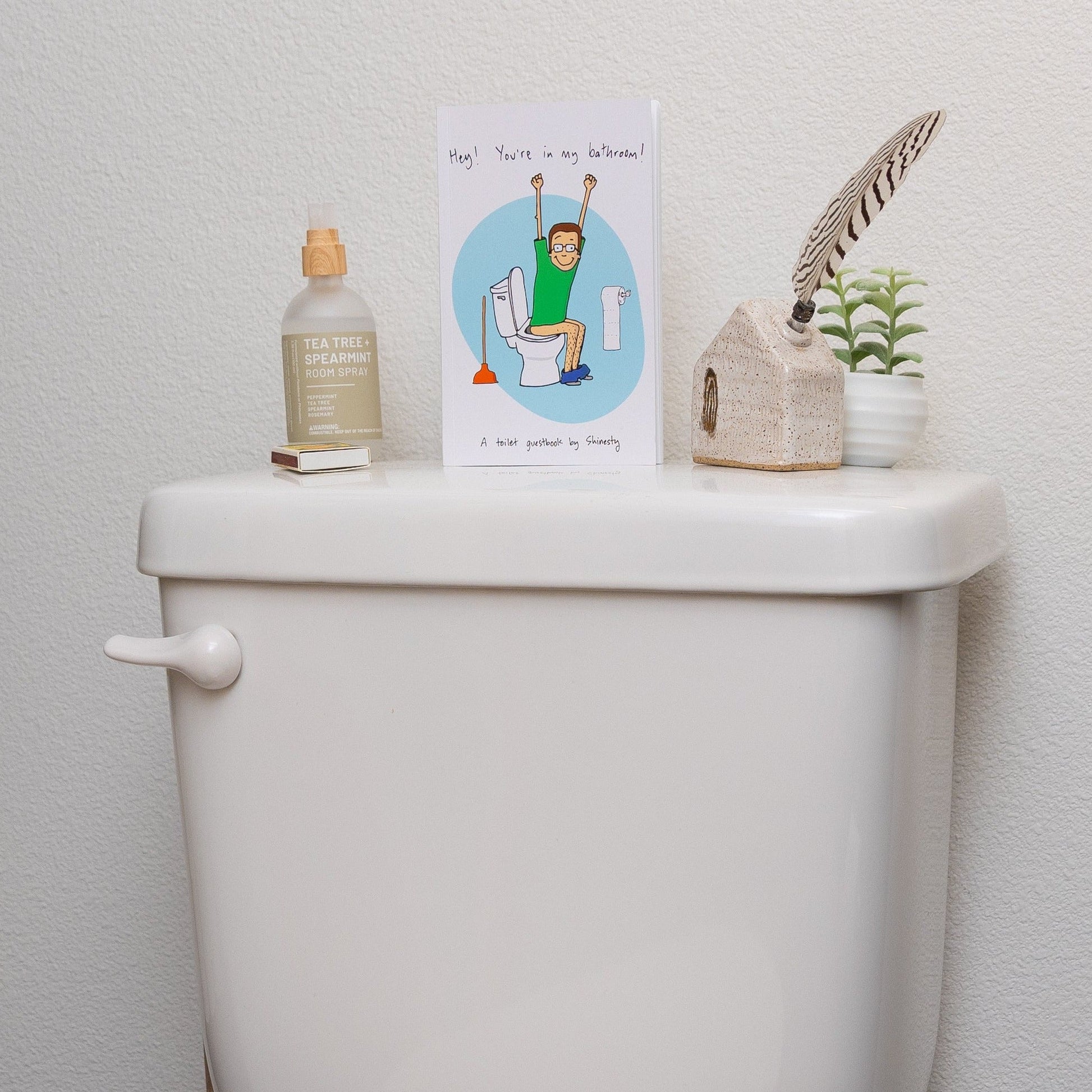The perfect addition to any bathroom! Pop this tiny book on the back of your toilet and start collecting memories from every guest pooper who graces your porcelain throne.