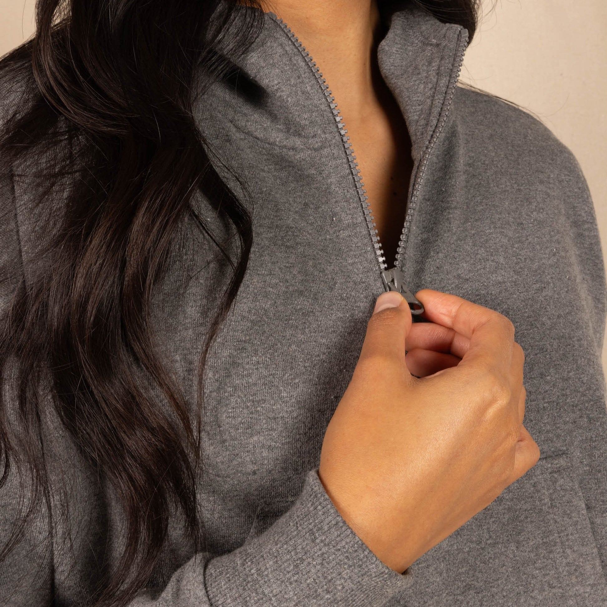 The Seattle Skyline | Grey Goldilocks™ Women’s Half Zip Lounge Hoodie
