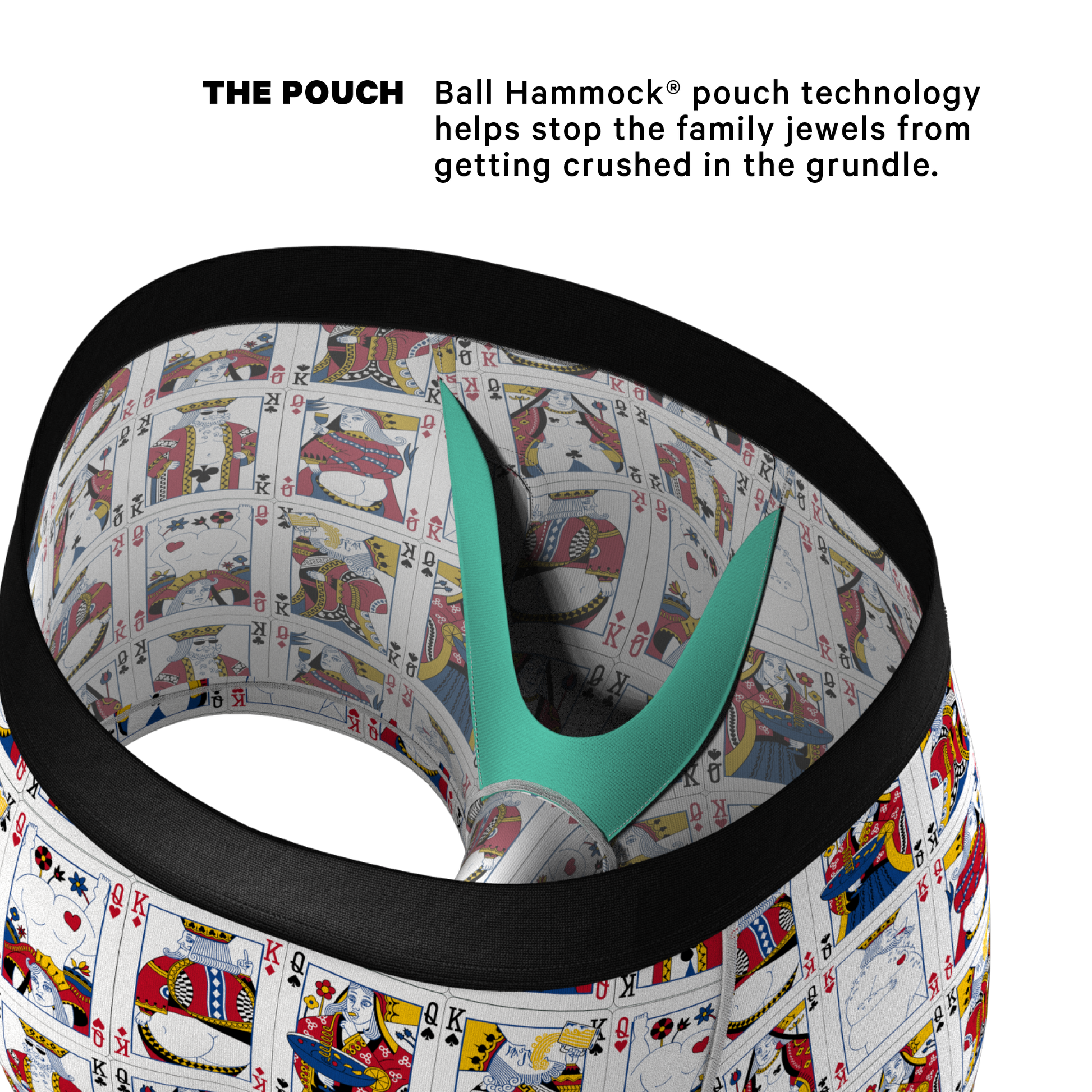The X-rated deck of cards on these Ball Hammock® pouch trunks underwear is sure to give you a raise. Just one look at these naughty kings & queens and you’ll be ready to jack. And if you’re feeling lucky, then it’s time to go all in. Of course, if you’re not a gambler, you can always fold your hand and play solitaire.