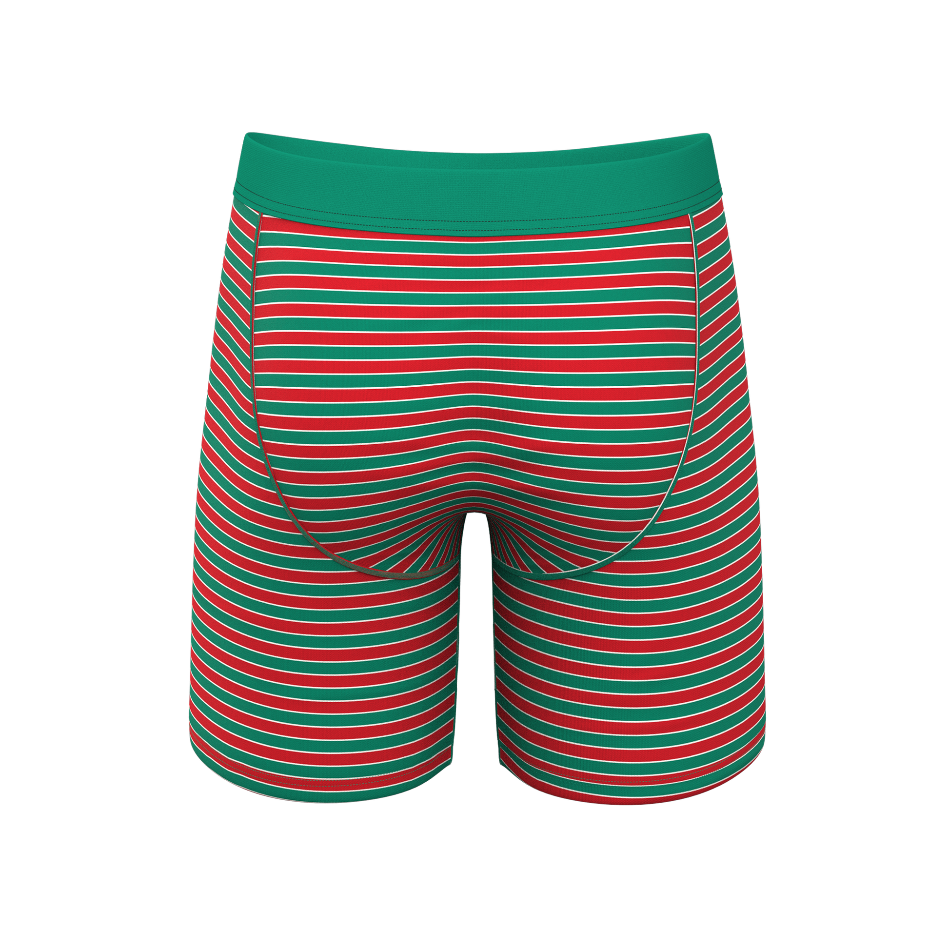 The Stripe Club | Christmas Striped Long Leg Ball Hammock® Pouch Boxers With Fly
