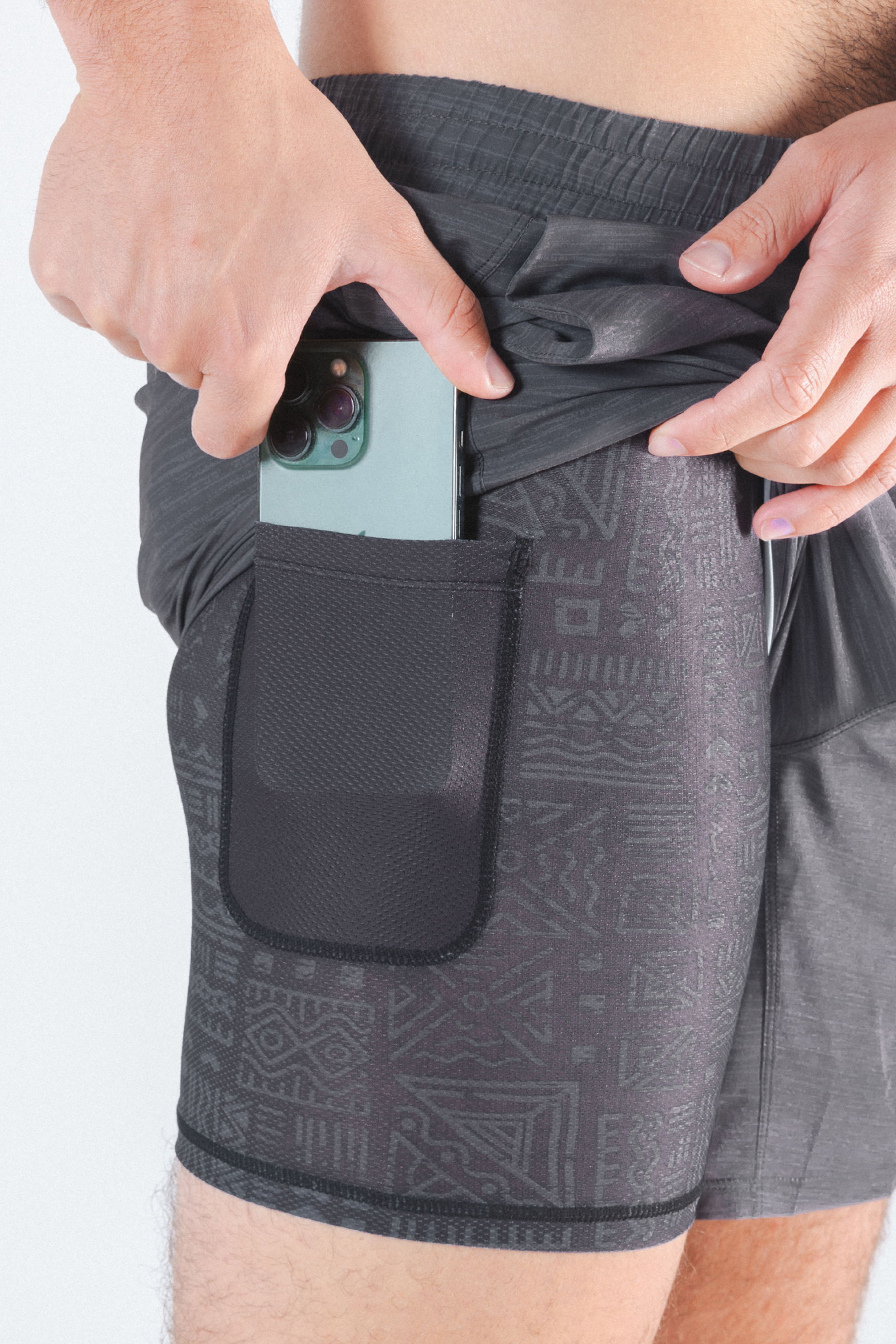 The Tribal Council | Grey Tonal Island Block Ball Hammock® 7 Inch Athletic Shorts