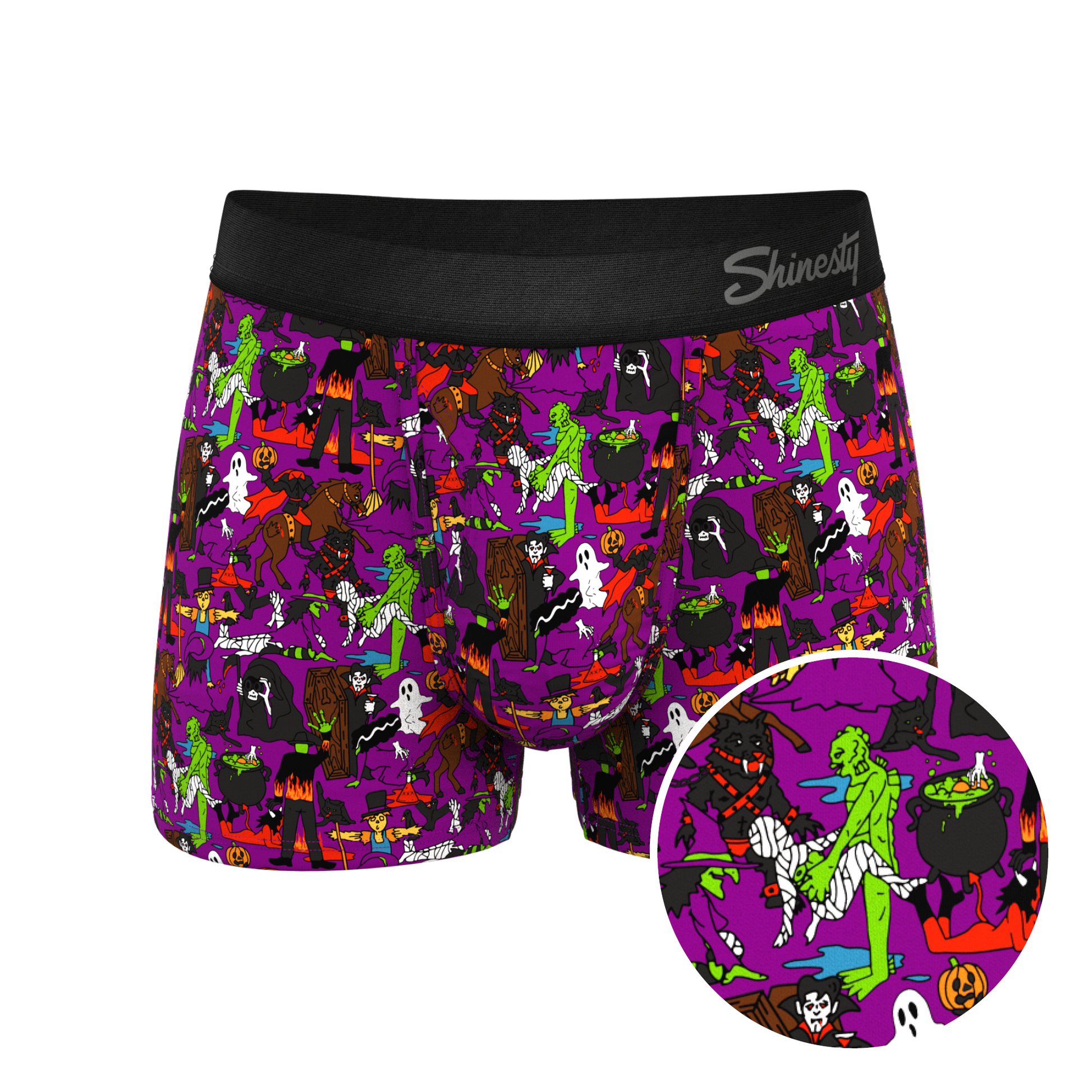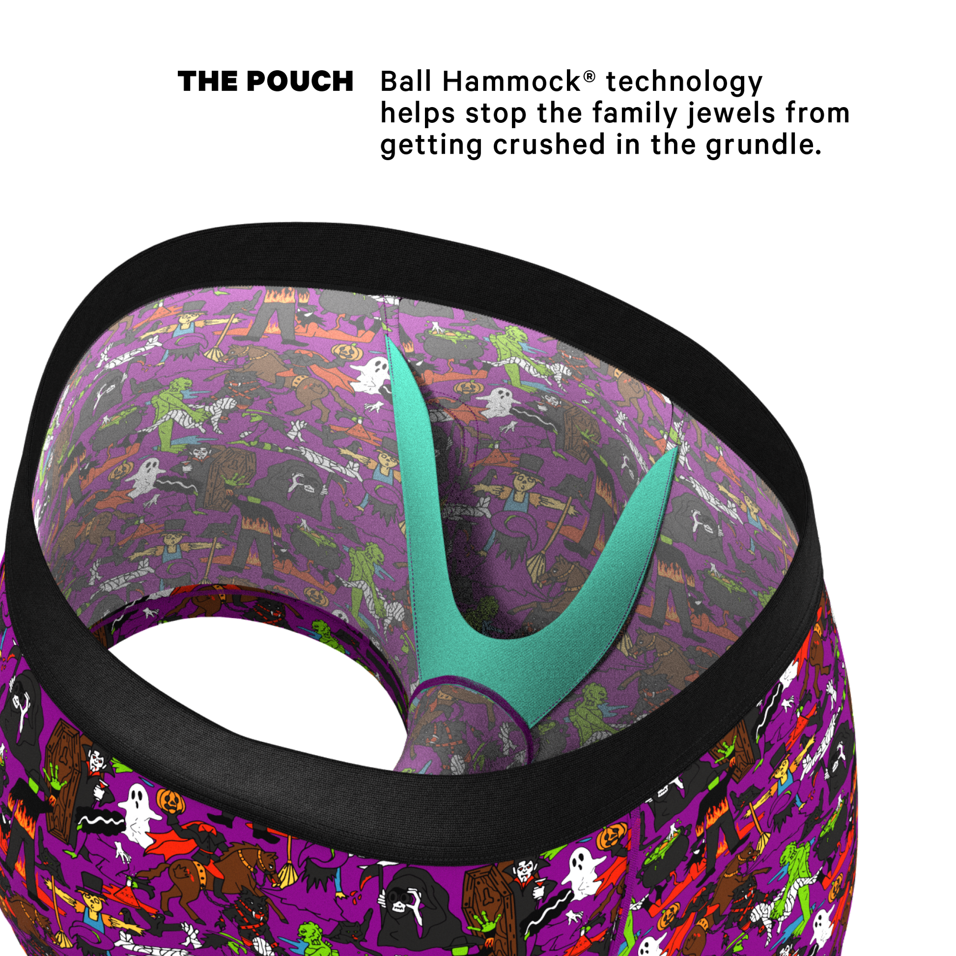The monstrous orgy on this Ball Hammock® Pouch Trunks Underwear definitely puts the “ween” in Halloween. But don’t worry, that’s just his step-mummy.