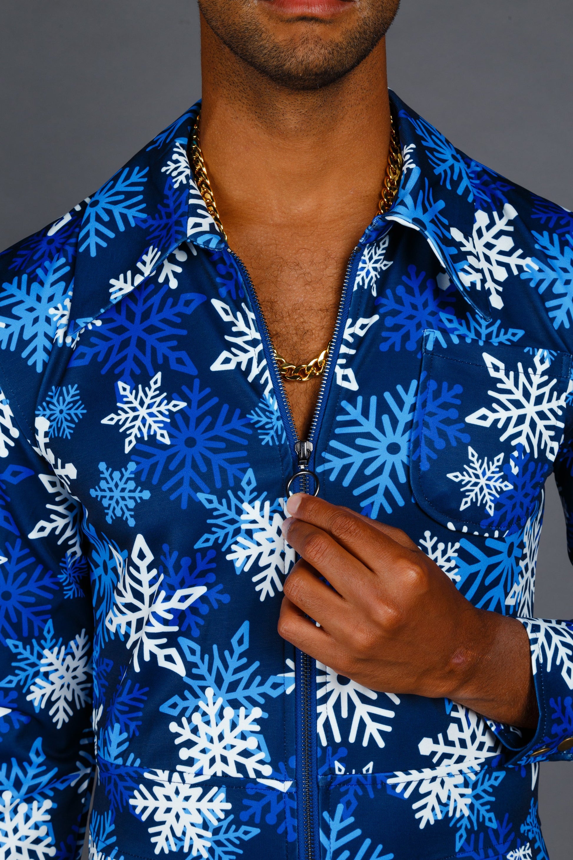 Christmas flight suits are not for cowards. They are not for the weak or the boring. A flight suit is for those with Big Zip Energy, and that's where the list of qualified recipients abruptly ends. When your massive zip is on full display, your BZE claims will never be doubted, and with a classic snowflake print, neither will your holiday spirit.