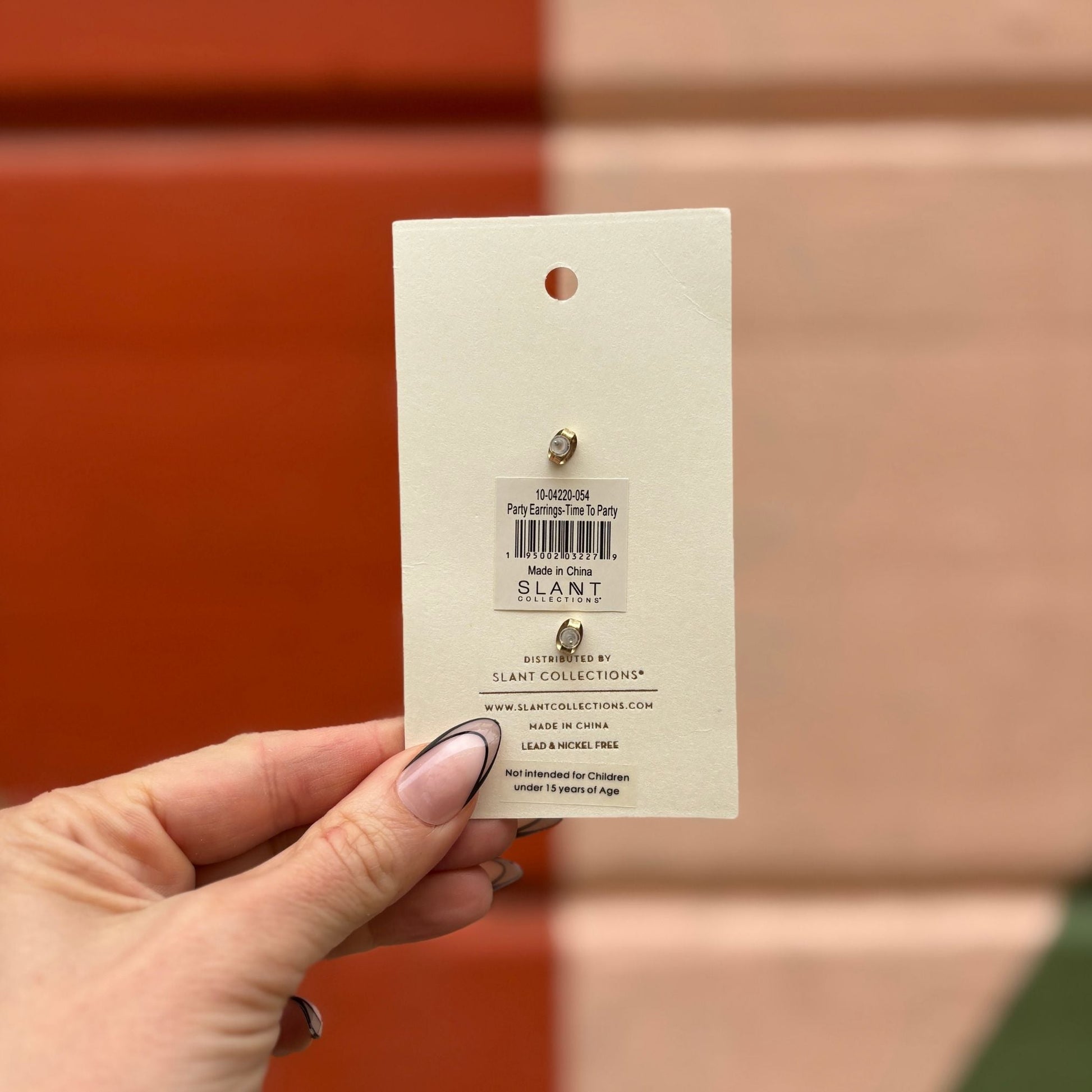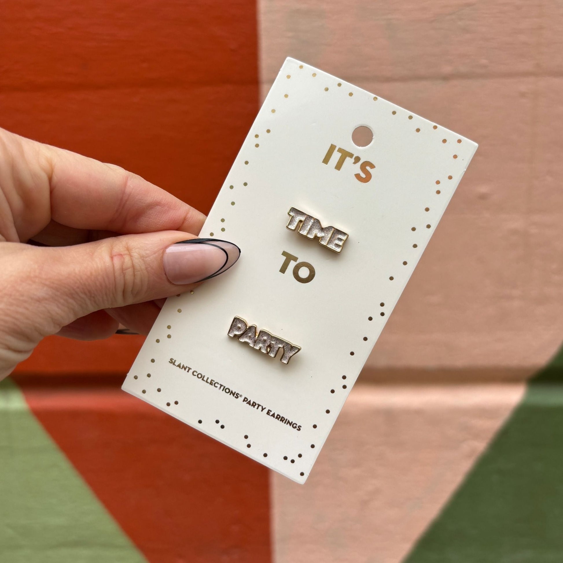 These Time to Party Earrings in light pink and gold with a glitter finish are a fun and festive accessory for any celebration. The zinc alloy material and festive backer card make them a unique and stylish gift for a birthday or special occasion.