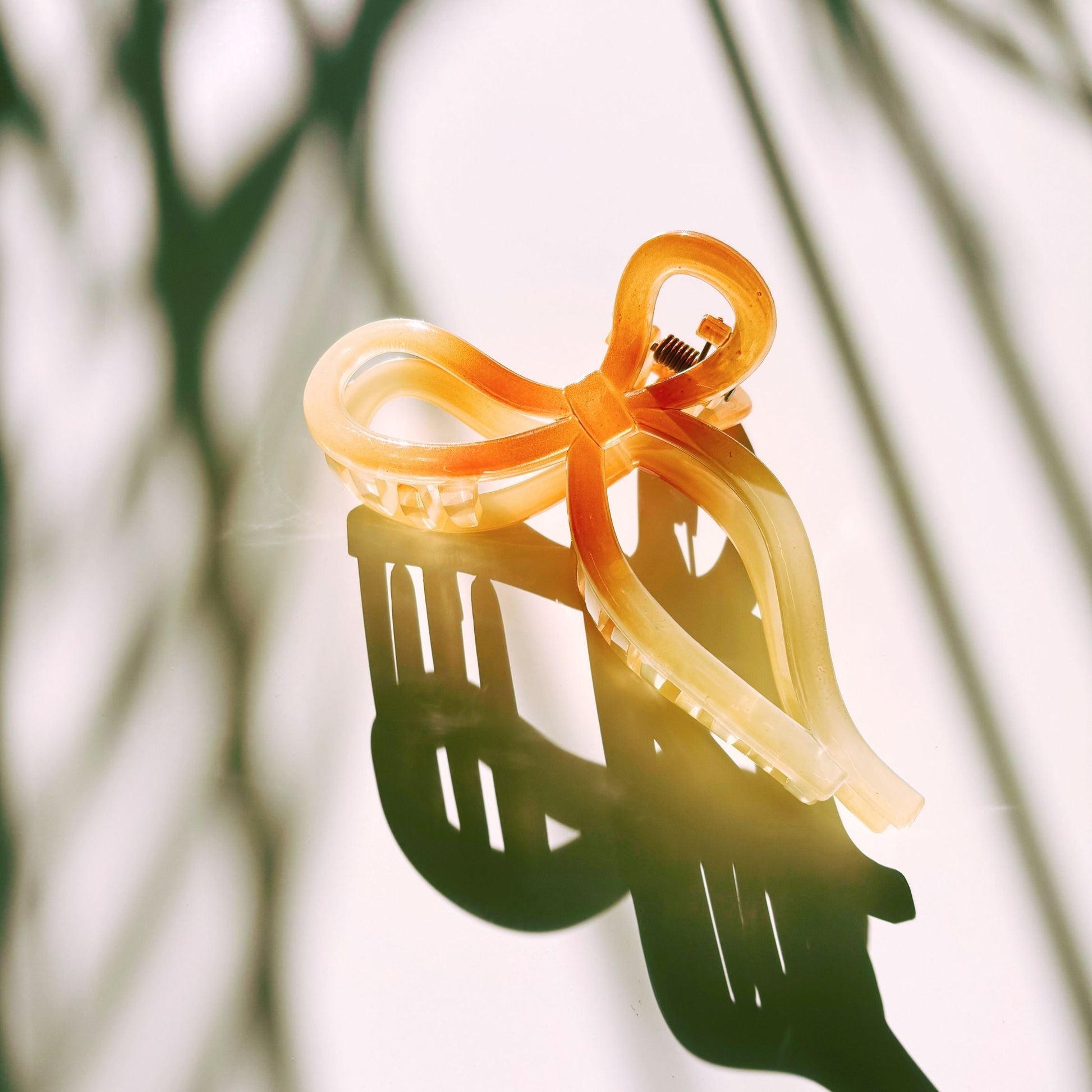 A delicate blend of elegance and charm, this bow-shaped claw clip in warm caramel latte tones adds a soft, romantic touch to any hairstyle. Designed for a secure yet lightweight hold, it comes with a luxurious velvet travel bag for effortless storage. A must-have for coquette-inspired looks!